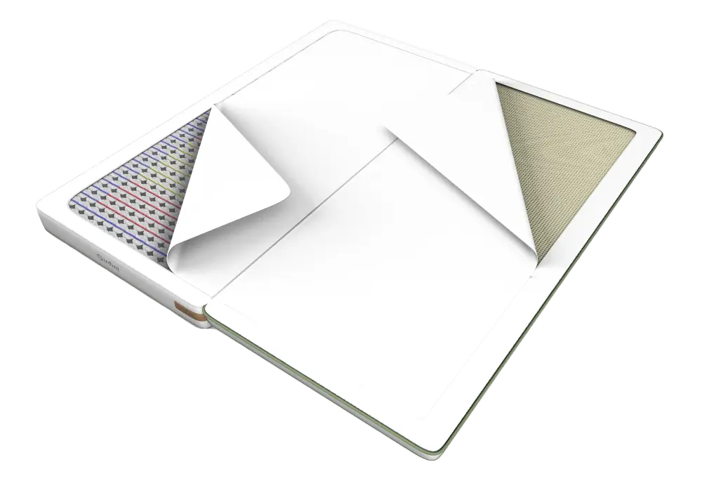 De matras is niet gelijmd, zodat alle onderdelen recycleerbaar zijn op het einde van hun levensduur.
